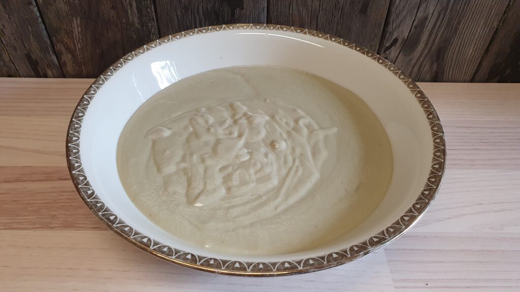 Etwa die Hälfte der Zutaten (ohne Schokolade) in einem Mixer oder einer Küchenmaschine zu einer cremigen Masse verarbeiten. In eine grosse Schüssel umfüllen. Mit einem Hochleistungsmixer würde die Masse besonders cremig – aber mit etwas Geduld kriegen wir es auch mit unserem normalen Mixer ganz gut hin.