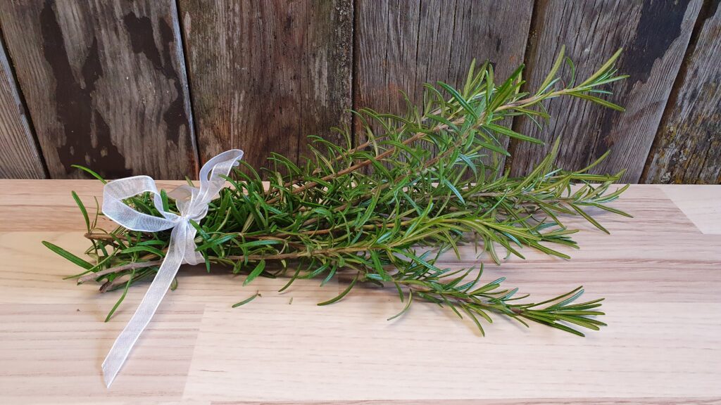 Die frischen oder getrockneten Blätter und Blüten des Rosmarins verwende ich vornehmlich zum Kochen, Backen und als Tee. Aber auch in der Haarpflege kommt Rosmarin zum Einsatz.