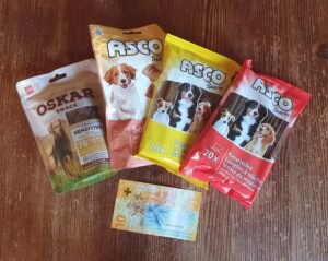 - Futter und Leckerli. Die Hunde haben letztes Jahr ein kleines Taschengeld erhalten. Davon haben wir für sie Leckerli für den ganzen Sommer eingekauft.