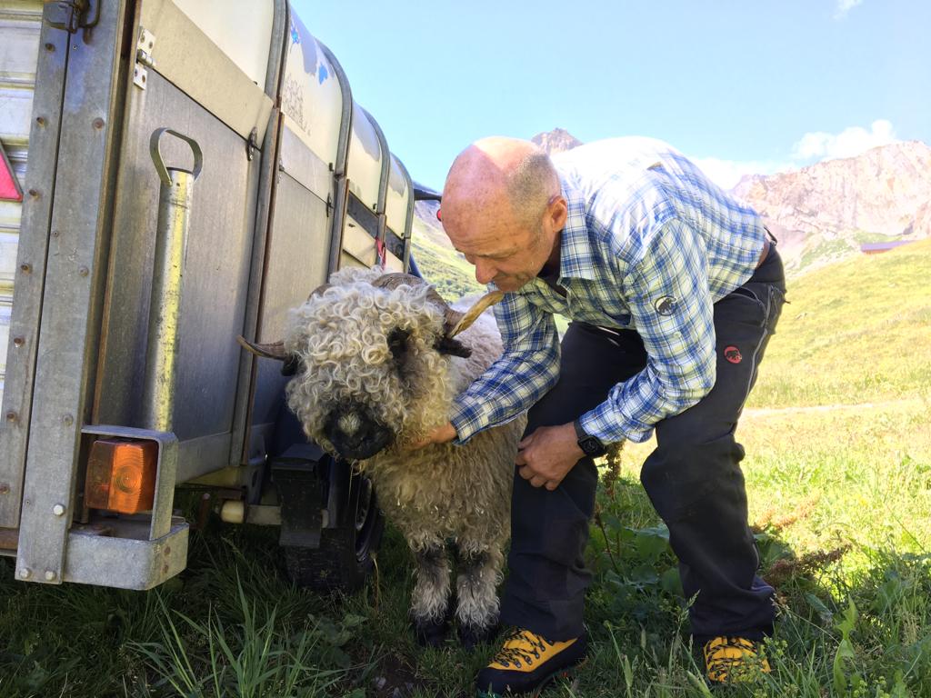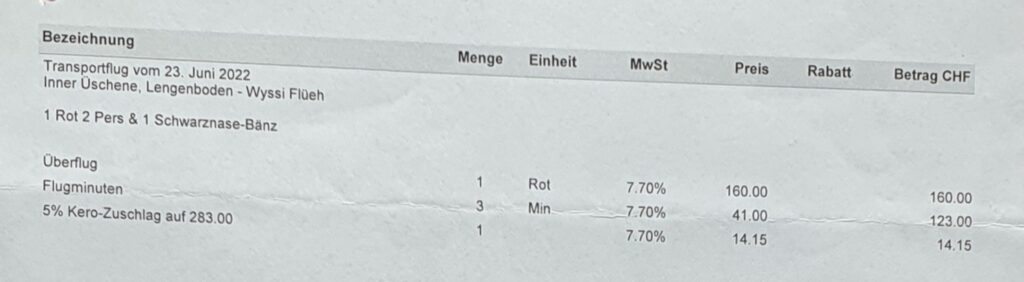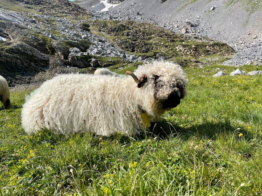 Etwa eine Woche vor der Alpauffahrt im Jahr 2022 stellten wir bei Baby Nevio eine Blutarmut fest. Unsere Tierärztin behandelte ihn umgehend, aber es war klar, dass er die zweitägige Alpauffahrt nicht schaffen würde. So entschieden wir, dass er mit Mama ’73 zuhause bleiben darf, bis er gesund ist. Anschliessend wollte wir die beiden mit dem Helikopter auf die Alp bringen.