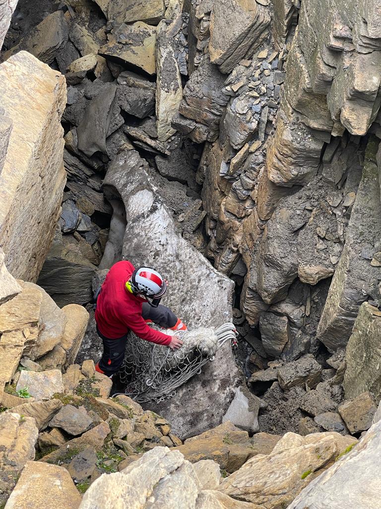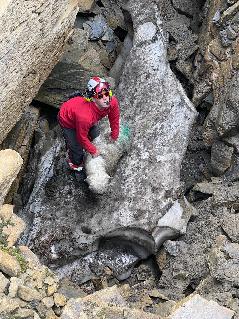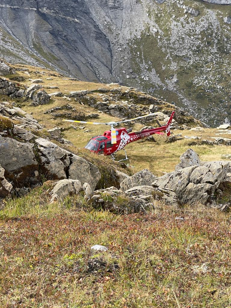Wie durch ein Wunder ist das Lamm unverletzt. Es wird aus der Spalte geflogen und zu seiner Herde gebracht, die sich nur wenige hundert Meter daneben aufhält. Es kann glücklicherweise am anderen Tag mit seiner Herde die Alpabfahrt antreten.